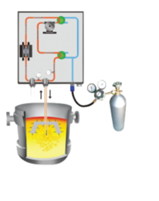 This system measures the amount of hydrogen dissolved in bath and through the thermal conductivity of the returned gas then correlates the reading to the amount of hydrogen in the steel, according to Sievert's law.
